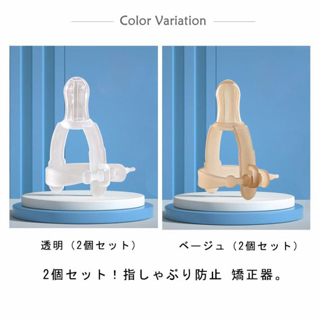 | 2個セット!指しゃぶり防止 矯正器。 子供の安心を第一に考え食品医療グレードのシリコン製で作りました。 短い時間で、指を吸う悪い習慣が変わります。 汚れても簡単に洗えて清潔。 | |