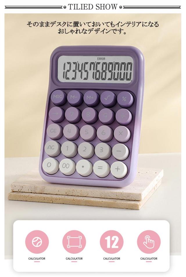 滑り止め おしゃれ 大型LCDディスプレイ 計算機 計算機 電卓 大型LCDディスプレイ 持ち運び便利 かわいい 丸ボタン 人間工学設計 オフィス 12桁