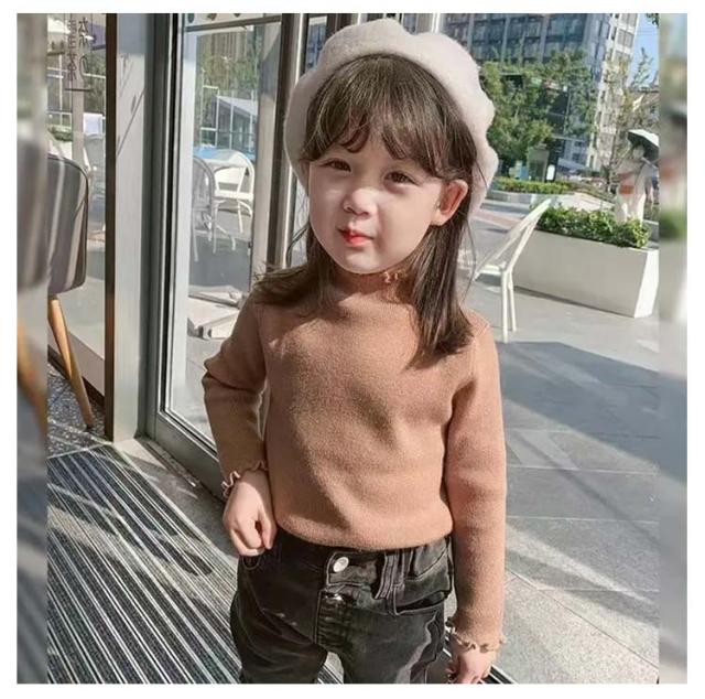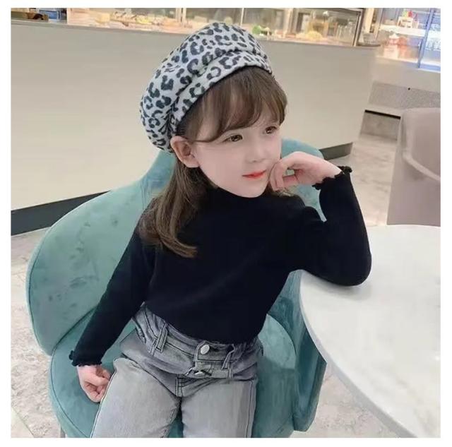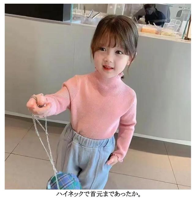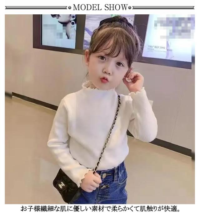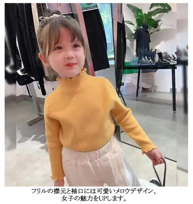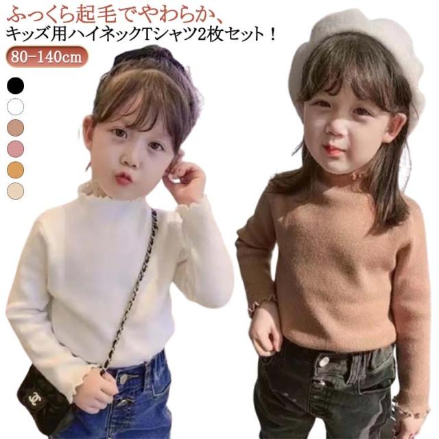 キッズ ハイネック 140cm あったか カットソー 厚手 Tシャツ 無地 秋冬 女の子 子供服 ガールズ 長袖 フリル インナー トップス ハイネック 90 100 110 120 130 80 防寒 暖かい シンプル メロウ 子ども こども服