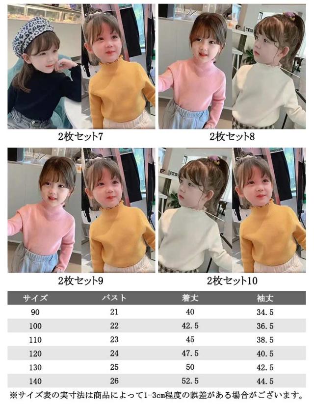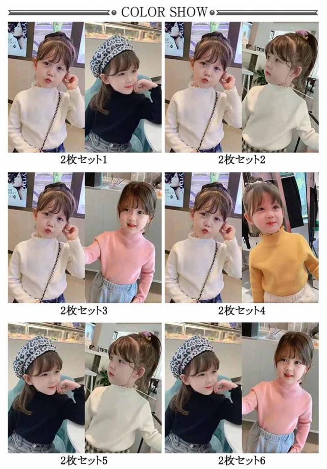 | ふっくら起毛でやわらか、キッズ用ハイネックTシャツ2枚セット! お子様繊細な肌に優しい素材で柔らかくて肌触りが快適。 ハイネックで首元まであったか。 1枚ではもちろん、重ね着もできるのでヘビロテ間違いなし。 フリルの襟元と袖口には可愛いメロウデザイン、女子の魅力をupします。 | |