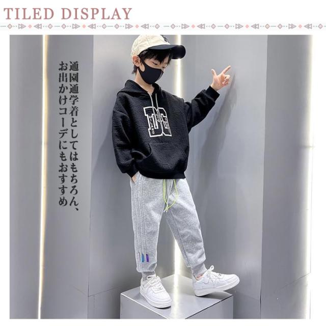 | 100-170cm!暖かい裏起毛スウェットパンツ。 トレンドに左右されることのないなデザインのスウェットパンツ。 裾を絞り足元にボリュームを出す着こなし。 はくだけでトレンド感のあるファッションが楽しめる1枚です。 程よい厚みがあり、長いシーズン着まわしやすい素材です。 通園通学着としてはもちろん、お出かけコーデにもおすすめ。 | |