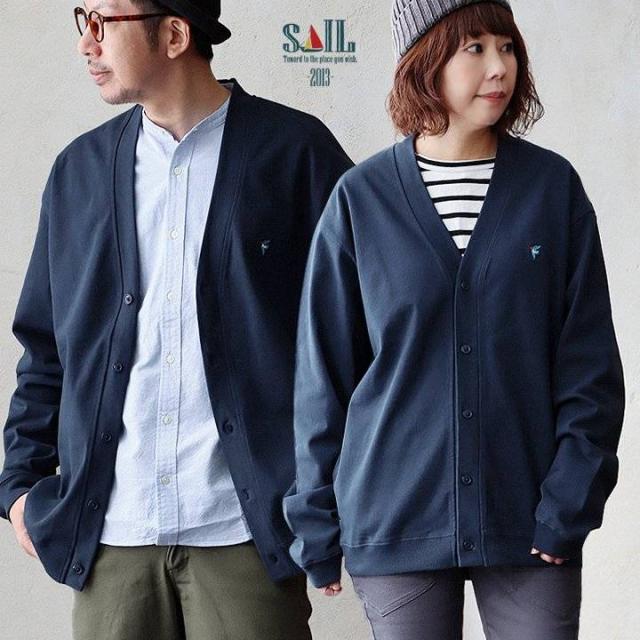 カーディガン 長袖 メンズ レディース 10オンス コットン 綿100% シンプル ワンポイント 刺繍 Vネック ルーズフィット ジャージー しっかり 丈夫 ヴィンテージ感 SAIL セイル