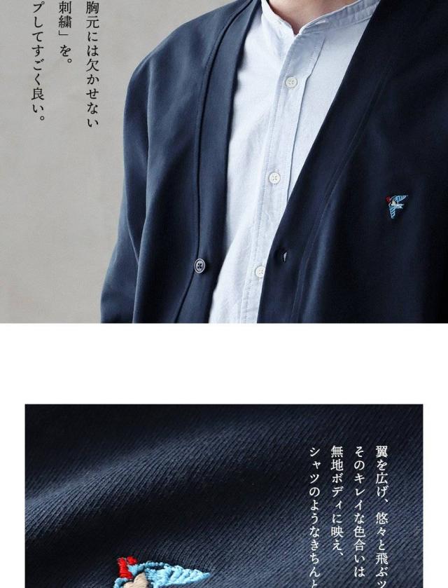カーディガン 長袖 メンズ レディース 10オンス コットン 綿100% シンプル ワンポイント 刺繍 Vネック ルーズフィット ジャージー しっかり 丈夫 ヴィンテージ感