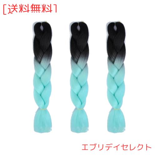 Feibin 30色 ウィッグ エクステンション 3本セット ブレイズ 編み込み グラデーション 三つ編み ヘアアクセサリー 盛りアップ つけウィッ