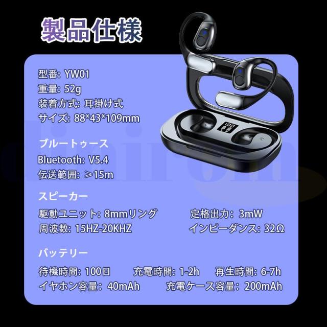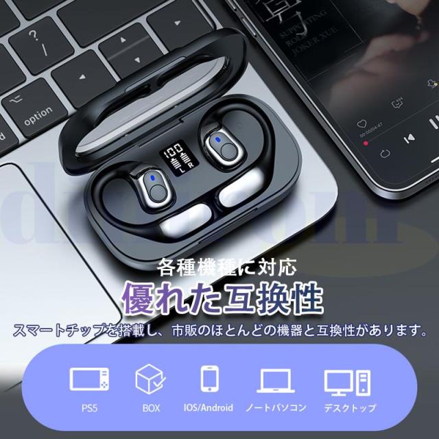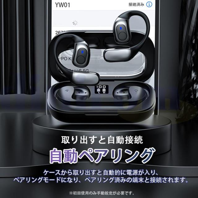耳掛け式 イヤホン Bluetooth5.3 オープンイヤー型 ワイヤレスイヤホン 最大24時間再生 耳を塞がない開放型 装着感快適 完全ワイヤレスイヤホン