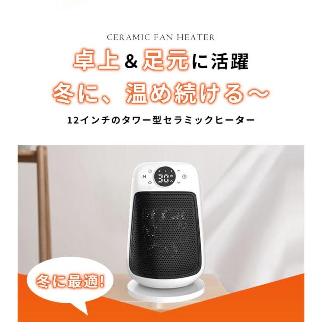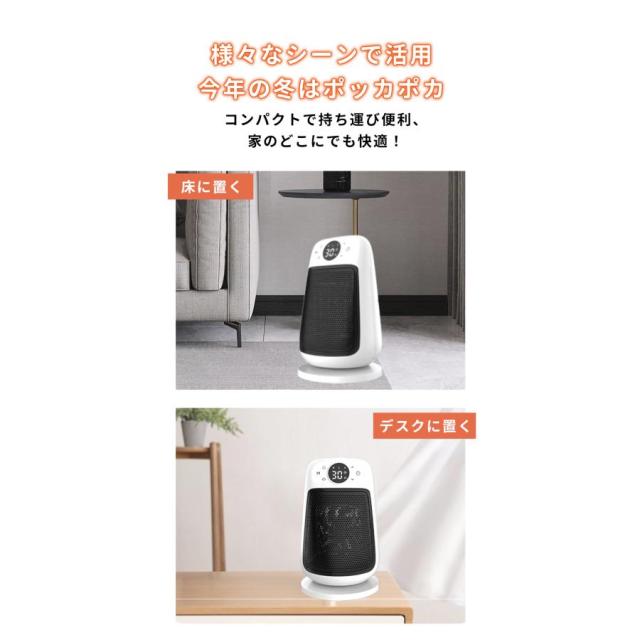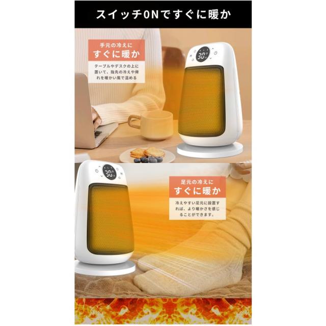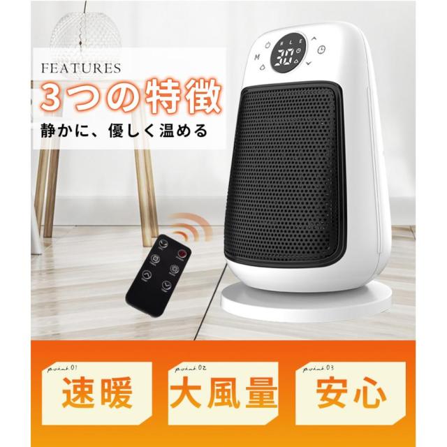 ヒーター セラミックヒーター ファンヒーター 電気ストーブ 足元ヒーター 90°首振り 3秒速暖 3段階切替