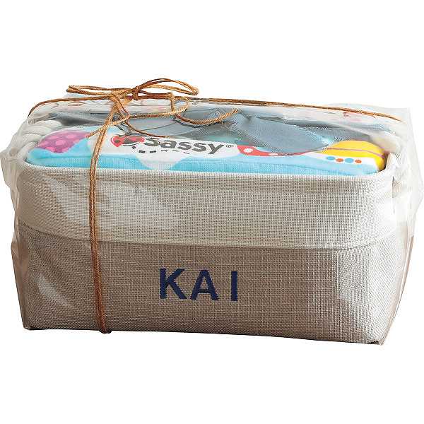 お子様の成長とともに、おむつストッカー・トイボックス等、様々な用途に使えるバスケットと、身長計バスタオルが付いたギフトセットです。