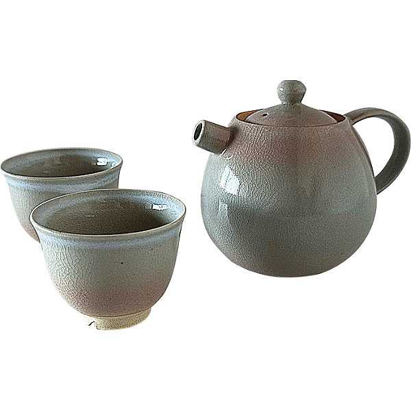 ぽっこりとしたフォルムが可愛らしい、萩焼の伝統的な色合いのティーセットです。