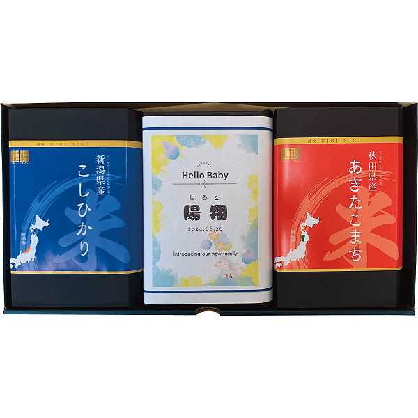 「米どころ新潟」新潟米を代表する「コシヒカリ」・秋田県のブランド米の代名詞「あきたこまち」・五ツ星マイスターが厳選した「ブレンド米」の食べくらべができます。お名前が入った可愛い巻紙でお届けします。