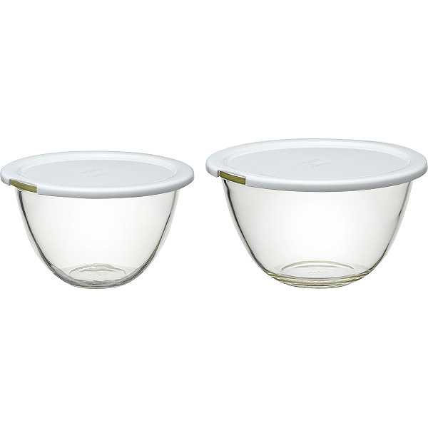 混ぜやすい深い形状の耐熱ガラス製ボウルに、電子レンジ調理時のラップ代わり、、冷蔵庫での保存に便利な耐熱ガラスボウル用のフタ付きです。電子レンジ・オーブンにも使用可能です。
