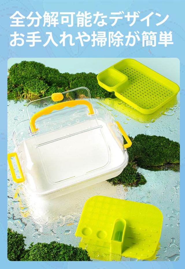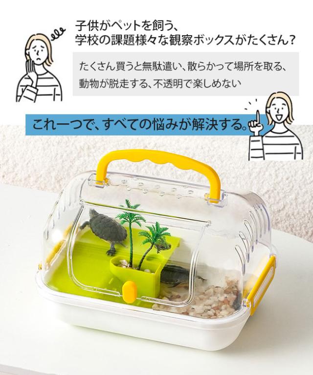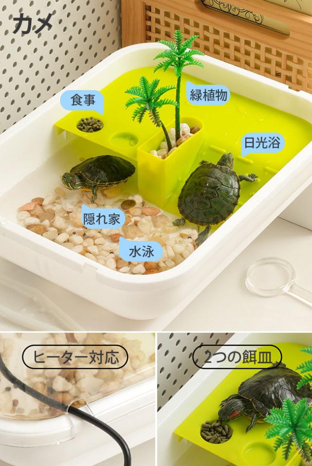 カメ 水槽 飼育ケース 亀 日向ぼっこ台 エサ皿 脱出防止 爬虫類 昆虫飼育ケース 飼育容器 小動物用ケージ カブトムシ 昆虫の飼育