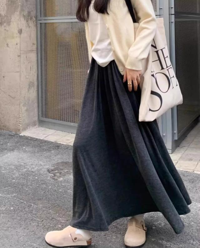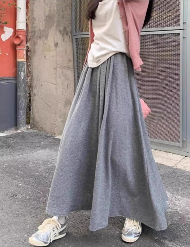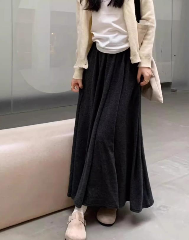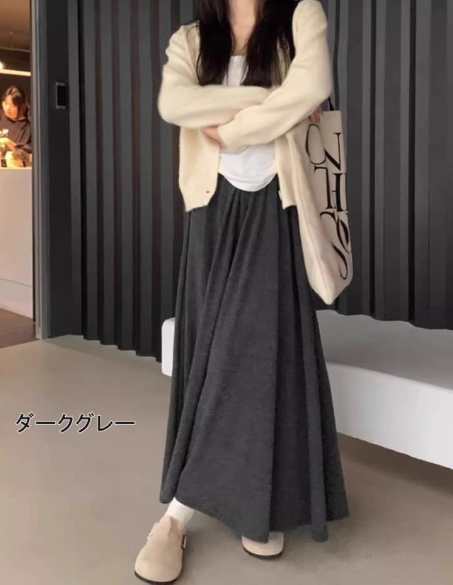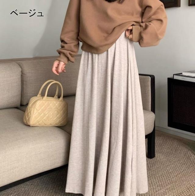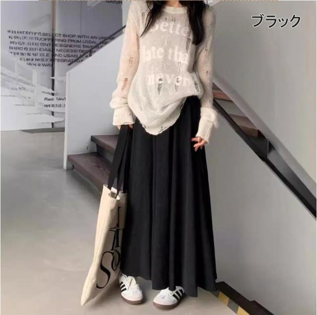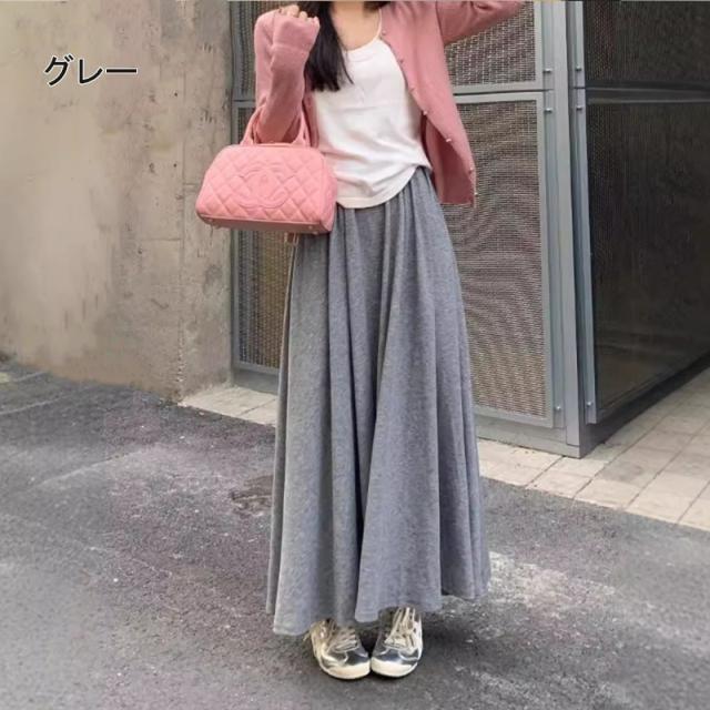 送料無料 スカート レディース 秋冬 ワイド フレア ロングスカート ハイウエスト ロング丈 ボトムス 無地 ウエストゴム 大きいサイズ ゆったり 体型カバー 着痩せ 通勤 カジュアルパンツ お洒落 きれめ シンプル