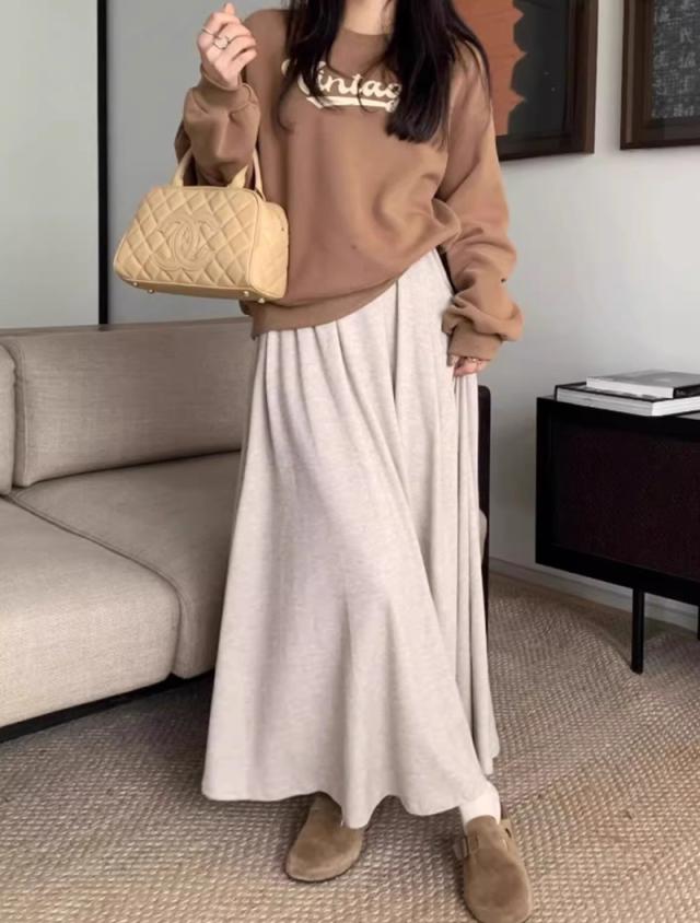 ◎オールシーズンのコーディネートにぴったりな、贅沢なフレアデザインのロングスカート。