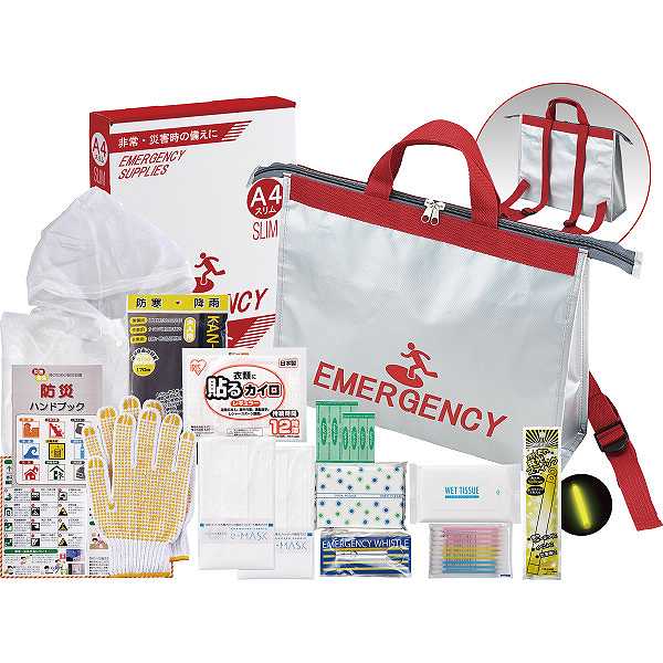 地震・災害発生時に、急いで避難場所までの移動を行う為、最低限必要と思われる防災グッズをセットした避難セット。軽量のトート型リュックタイプで両手を空けて行動出来ます。A4サイズスリムパッケージ入りで書棚やデスクの引き出しに収納可能!