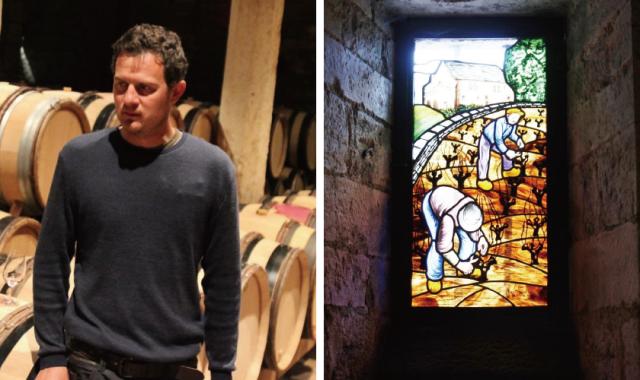 ![]() | 13世紀に建てられた教会をそのままカーヴとして利用し、新樽が並んだ地上のカーヴでは最新のヴィンテージのワインのマロラクティック醗酵が行われ、地下水が壁から染み出ている砂利が敷き詰められた地下のカーヴでは、その前年のワインを熟成。 瓶詰めの際にはフィルターもコラージュも行いませんが、ワインは非常に透明感があります。 |