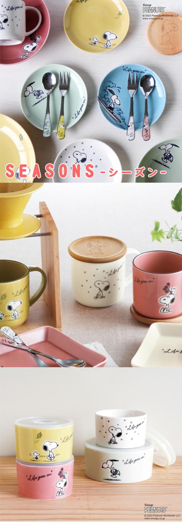 スヌーピー SEASON-シーズン- コースター付マグ ホワイト SN614-11C 日本製、新生活、電子レンジOK、陶器、コースター、天然木、蓋、350ml