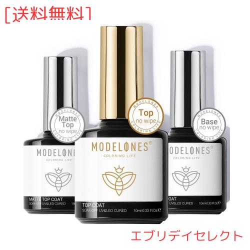 Modelones ジェルネイル トップコート マットトップコート ベースコート 3本セット10ml 拭き取り不要 UV/LED対応