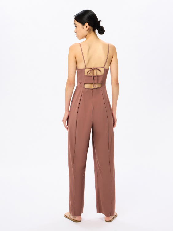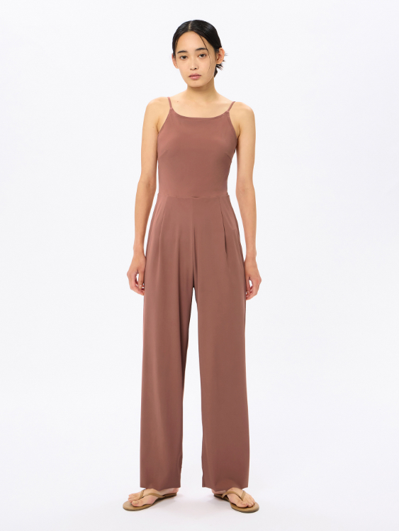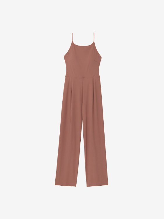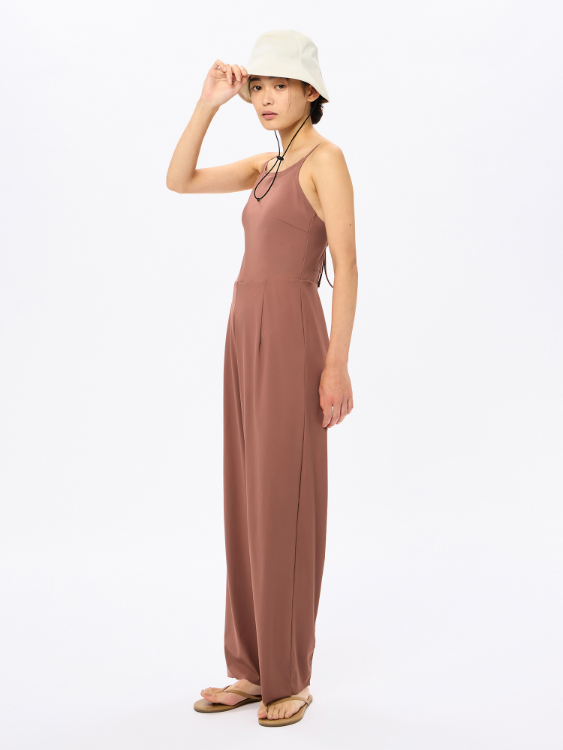 GRS認証のすてられるべき廃棄物を100%使用したナイロン糸「RECO(R)NYLON(レコ・ナイロン)」を使用したリサイクル素材「Sensitive(R)Reco(センシティブ レコ)」採用のレディースロングオールインワンです。