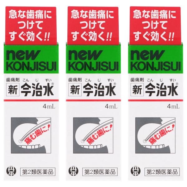 ●液剤タイプの「新今治水」は、キャンフェニック処方(カンフル・フェノール・アルコールに配分)を応用してつくられた歯痛のお薬です。歯の痛いところに直接作用して、すみやかに痛みを鎮めます。