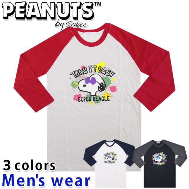 ★メール便送料無料★ スヌーピー 七分袖 Tシャツ メンズ S1243-44A PEANUTS 犬 プリント グッズ