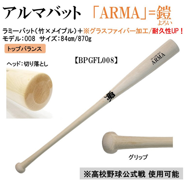 和牛JB アルマバット ARMA グラスファイバー加工 竹×メイプル 84cm870g トップバランス 高校野球対応 野球 一般 大学 BPGFL-008