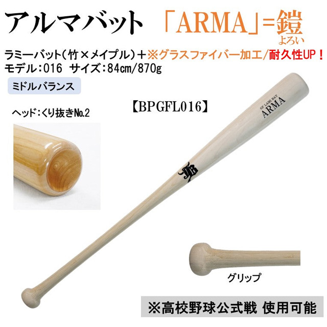 和牛JB アルマバット ARMA グラスファイバー加工 竹×メイプル 84cm870g ミドルバランス 高校野球対応 野球 一般 大学 BPGFL-016