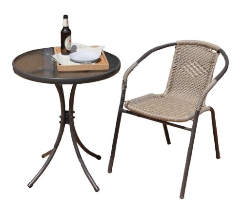 本体サイズ(約):テーブル/幅60×奥行60×高さ68cm、椅子/幅52×奥行59×高さ74cm(座面高:41cm) 本体重量(約):テーブル/6.1kg、椅子/3.3kg 椅子座面サイズ(約):幅37.5×奥行38cm 耐荷重:テーブル/20kg、椅子/80kg ベランダやテラス、お庭でカフェ気分を過ごしてみませんか。ラタン調のアジアンリゾートデザインで優雅なリラックスタイムを。テーブルの天板は、飲み物をこぼしてもふき取りやすいガラス天板で、涼しげな印象。届いてスグに使えるチェア&テーブルセット