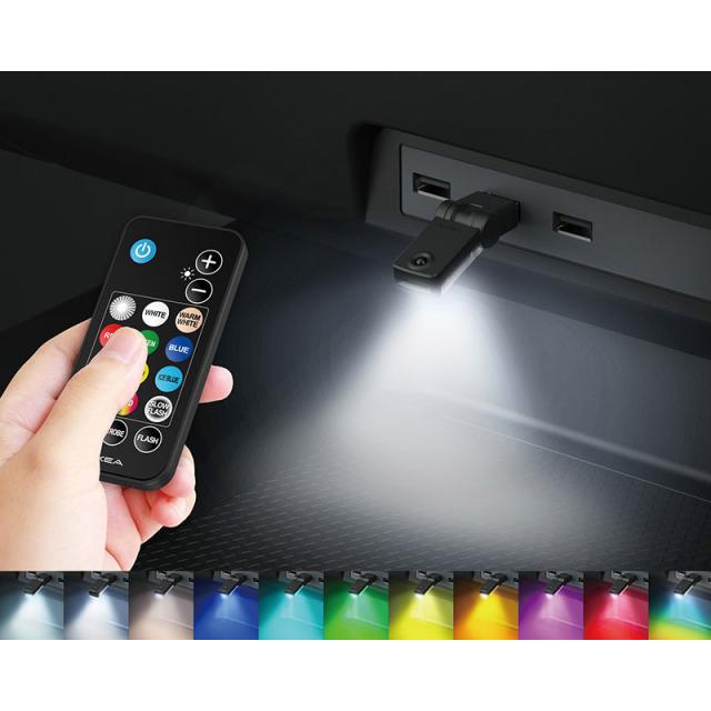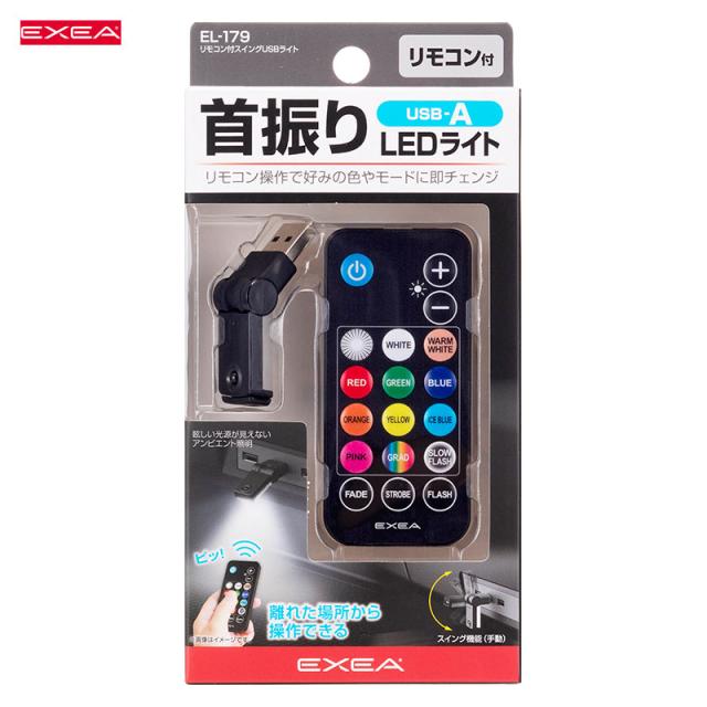 リモコン付スイングUSBライト イルミネーション 8色パターン 車内灯 180°首振り 蛍ランプ 1個入 USB-A 星光産業 EL-179