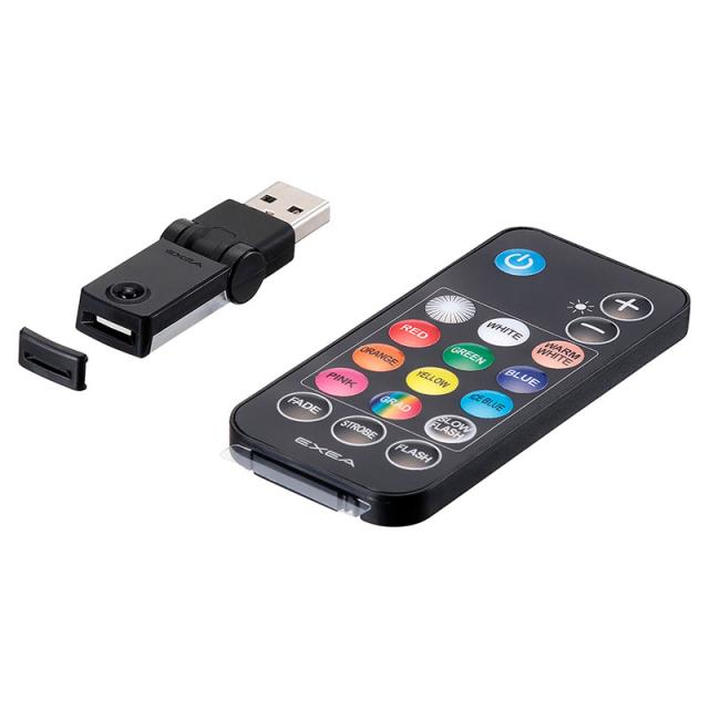 ・8色の単色点灯や点滅パターンをリモコンで操作できるUSB-Aポート用のLEDライトです。