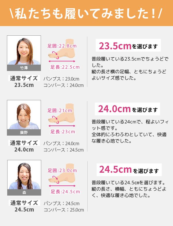 取り扱いサイズ:23cm 23.5cm 24cm 24.5cm