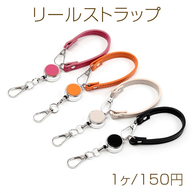 リールストラップ PUレザーリール付きストラップ リールキーホルダー パスケース定期入れ用リール 伸びるリール (1本)