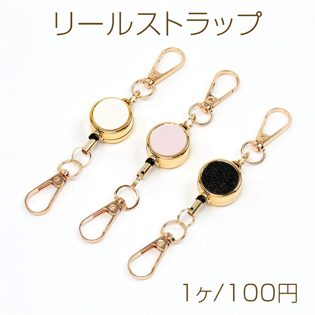 リールストラップ レザー貼り ナスカン2個付き 便利なリールキーホルダー パスケース定期入れ用リール 伸縮リール (1本)