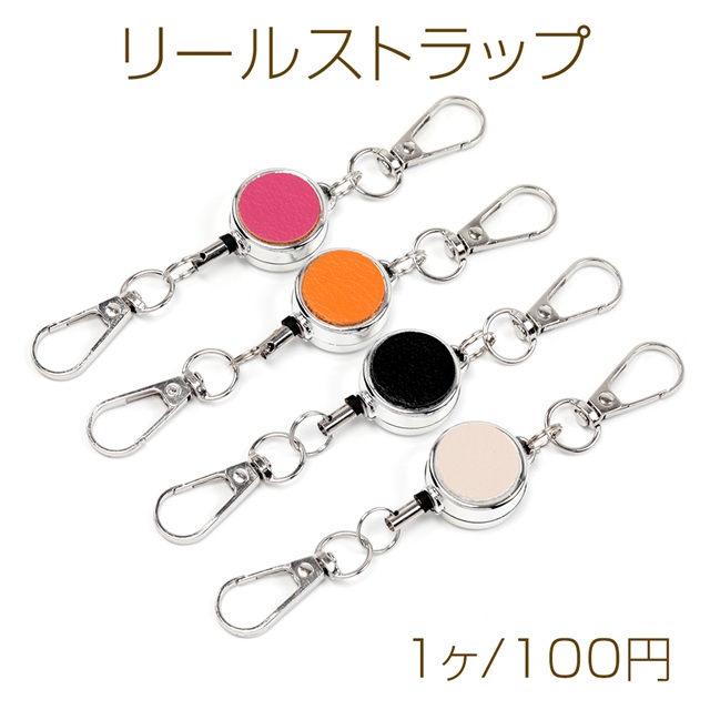 リールストラップ レザー貼り ナスカン2個付き 便利なリールキーホルダー パスケース定期入れ用リール 伸縮リール (1本)