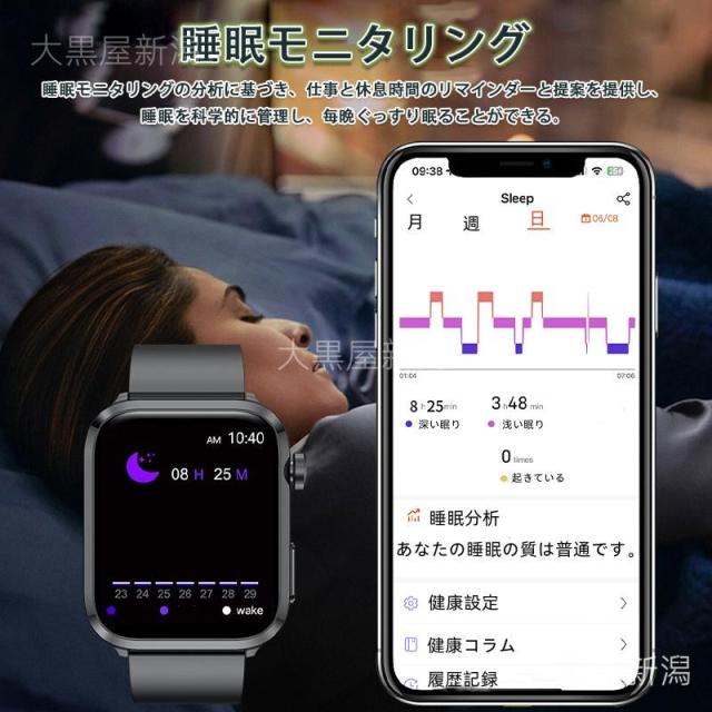 スマートウォッチ 24時間健康管理 血圧 心拍数 血中酸素 睡眠管理 歩数計 GPS測位 着信&LINE通知 iPhone/アンドロイド対応