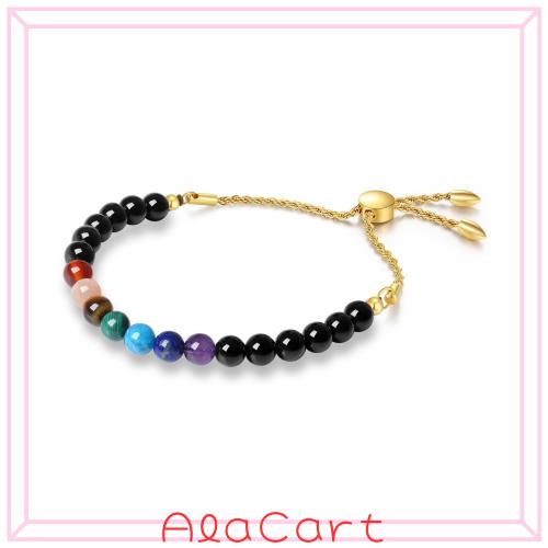 サイズ:スライド式の金留め具を使用しており、腕周り15-19cmの方に調整可能で、多くの方にフィットするデザインのチャクラブレスレットです