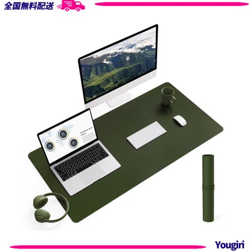 ◆商品名:YSAGi デスクマット マウス対応 レザー デスクマット 大型マウスパッド 裏面はスエード 滑り止め 厚さ2mm (オリーブグリーン,90*43cm)