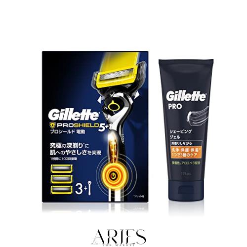 【Amazon.co.jp限定】ジレット プロシールド パワー 本体(替刃3コ付)+シェービングジェル 175ml【セット買い】敏感肌用 髭剃り カミソ