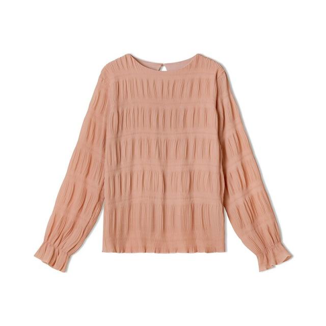 COCOMOMO(COCOMOMO)/シャーリングブラウス シフォン ブラウス フリル ラウンドネック シアー トップス 長袖 レディース