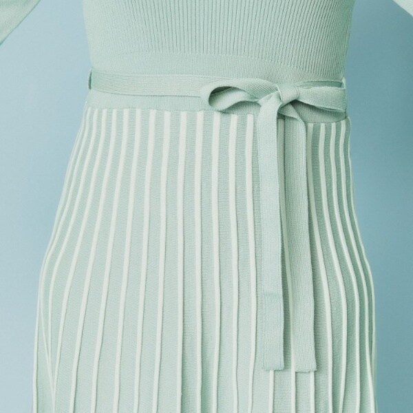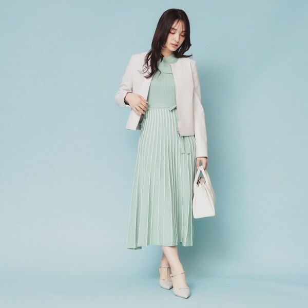・フロントのリブ編みは体型を美しく見せ、エレガントなシルエットを実現。