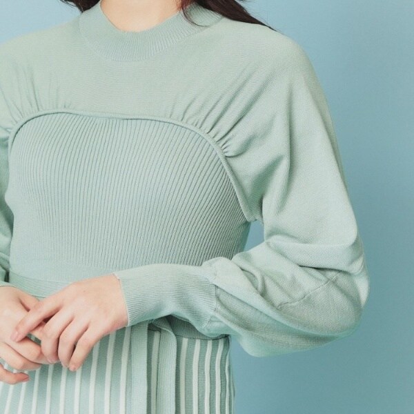ビスチェライクバイカラーニットワンピース【洗濯機洗い可】