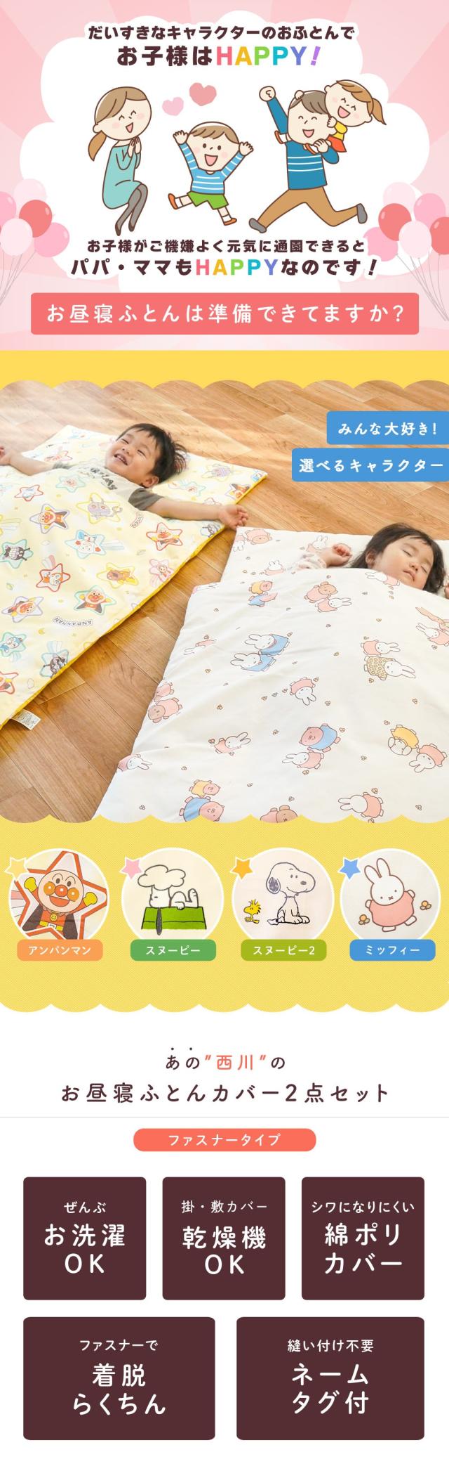 【2026年最新】西川 お昼寝布団カバー 掛け敷き 2点セット お昼寝布団 掛けカバー 80×110 敷きカバー 69×122 セット 幼稚園 保育所 子供 ベビー ミッフィー アンパンマン スヌーピー 入園 ネームタグ 洗える 保育園 布団カバー