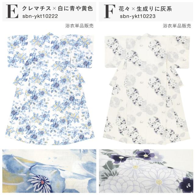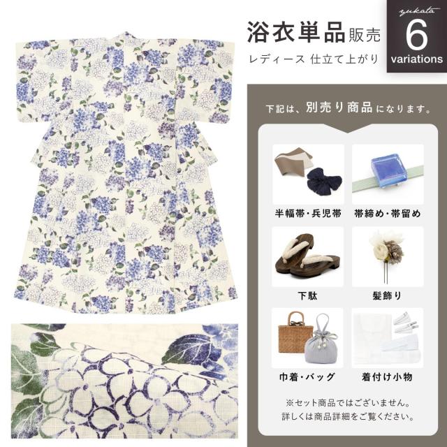 浴衣 レディース 単品 白 水色 青 紺 紫 生成り クリーム色 グレー クレマチス 牡丹 紫陽花 花柄 綿 女性 夏 大人 フリー 仕立て上がり 送料無料