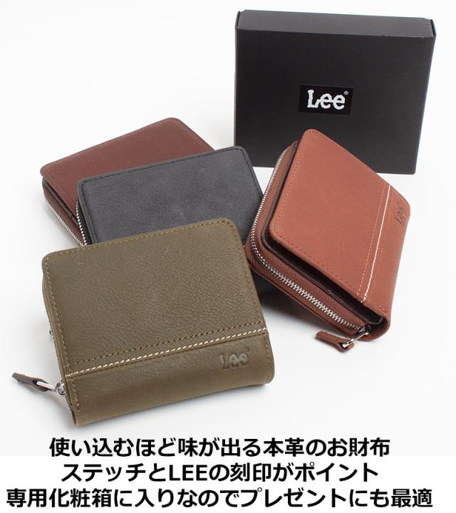 リー Lee 二つ折り財布 ラウンドファスナー 本革 ロゴ 小銭入れ付き メンズ カジュアル シンプル 0520528 日本正規品