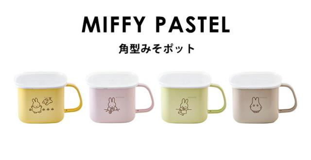 送料無料 味噌 容器 味噌ポット 富士ホーロー ミッフィーパステルシリーズ MFP-KP ホーロー ディックブルーナ ピンク イエロー グリーン グレー 角型 みそポット 密閉 保存容器 調味料入れ フタ ハニーウェア オーブン 琺瑯 ほうろう おしゃれ ミッフィー