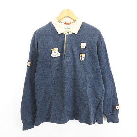 【中古】ハッシュパピー ポロシャツ ラガーシャツ スウェット 長袖 ロゴ ワッペン M ブルーグレー ※EKM メンズ