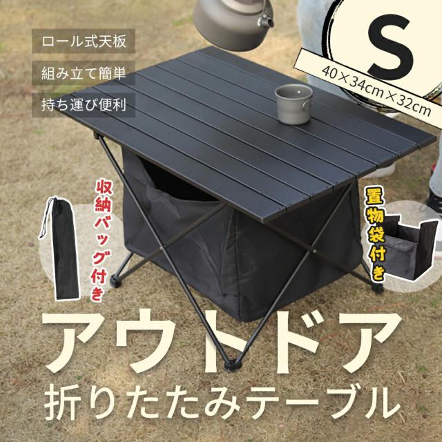 アウトドアにぴったりの折り畳みテーブル、組み立てがとっても簡単、物置き袋と収納バッグが付きます 超軽量なので女性でも子供でも楽々持てます 展開サイズ: 40×34×32cm