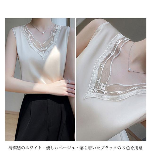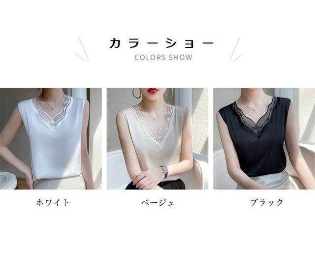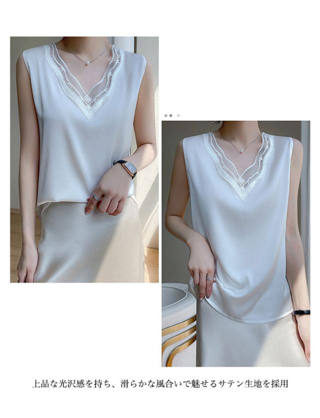 ■滑らかな風合い&上品な光沢感で魅せるサテン生地 レディースノースリーブブラウス