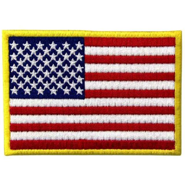 アメリカ 国旗 紋章 金縁 USA アメリカ合衆国 ミリタリー アップリケ刺繍入りアイロン貼り付け/縫い付けワッペン