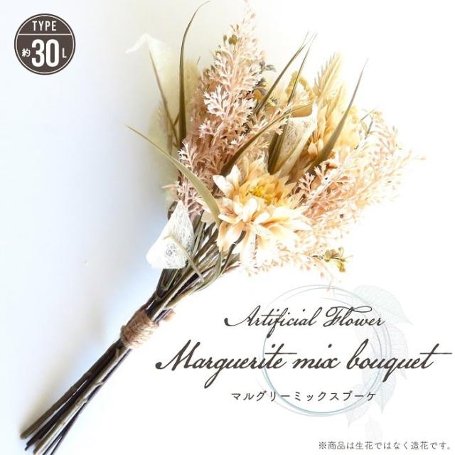 造花 アーティフィシャルフラワー マルグリーミックスブーケ 長さ30cmタイプ 花束 ブーケ バンドル マム 菊 ポアプランツ フェイクフラワー アレンジメント資材 インテリア 贈り物 ギフト