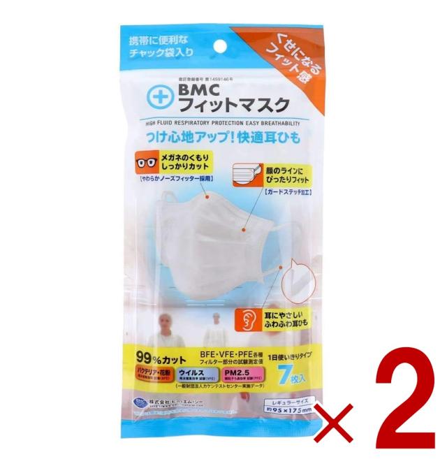 BMC フィットマスク レギュラーサイズ 白色 7枚入 不織布 マスク 2個